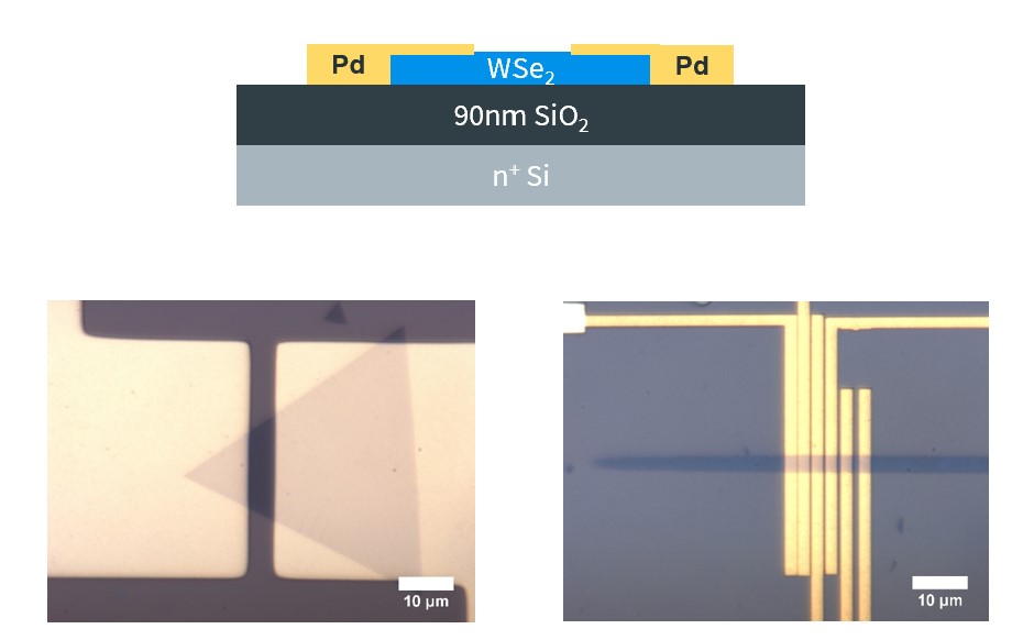 Further, we also focus on the development of high-performance p-type 2D transistors, which are crucial in 2D electronics. We’re now developing the p-type doping technique which concept is based on our previous work (ACS Nano, 17, 2653, (2023)). We start from fabricate the WSe2 microscale device to confirm the doping effect and other dopant properties testing. We also able to access the Helium Ion Beam Microscope (HIBM) to fabricate the nanometer device. We expect to develop the p-type doping technique applying on 2D device for the high performance p-type transistor.